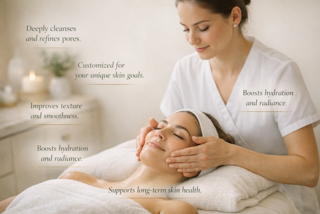 Whether you need a quick glow before an event or a structured plan to improve texture, acne, or early aging, we build your facial around what your skin actually needs.